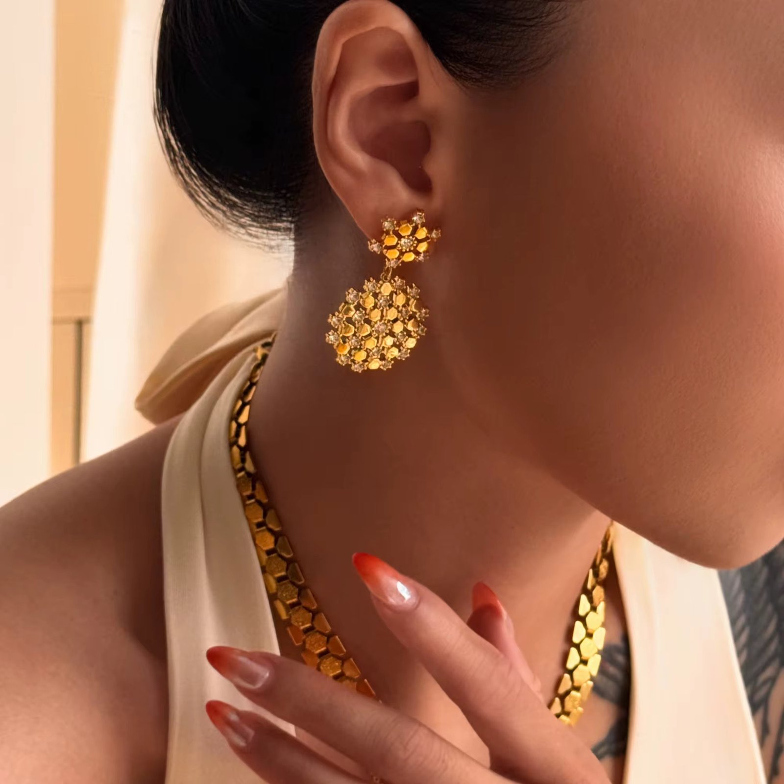 مطلي بالذهب 18 قيراط, حلق مرصع